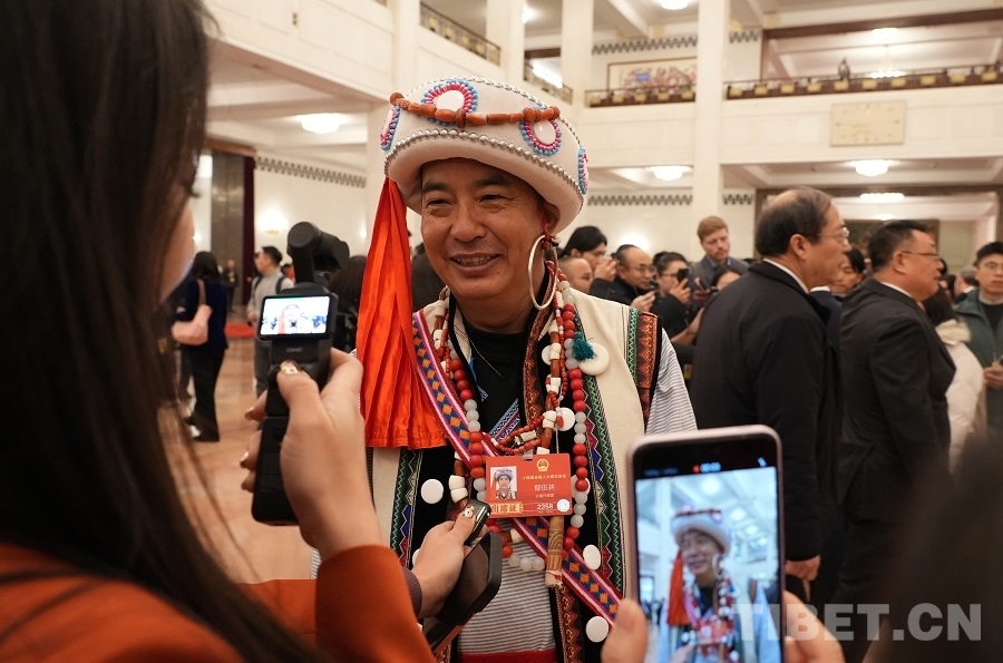 中國(guó)西藏網(wǎng)訊 3月5日上午,十四屆全國(guó)人大四次會(huì)議在人民大會(huì)堂開(kāi)幕。開(kāi)幕會(huì)前,身著民族服飾的人大代表們步入會(huì)場(chǎng),接受媒體采訪。(中國(guó)西藏網(wǎng) 記者/邊子捷 劉莉 編輯/王妍丹)