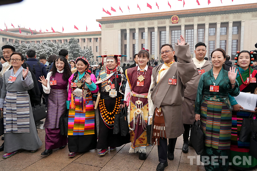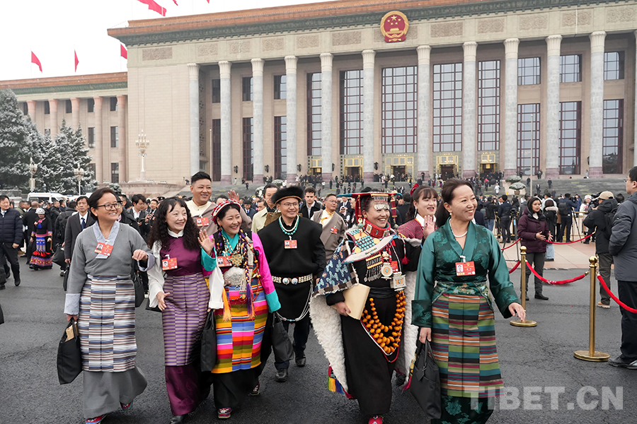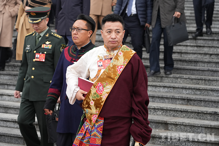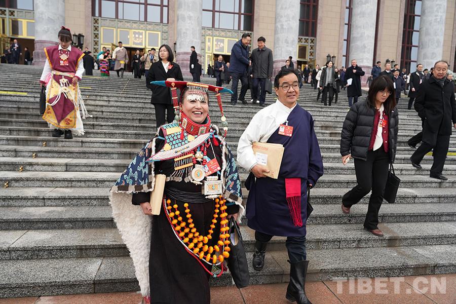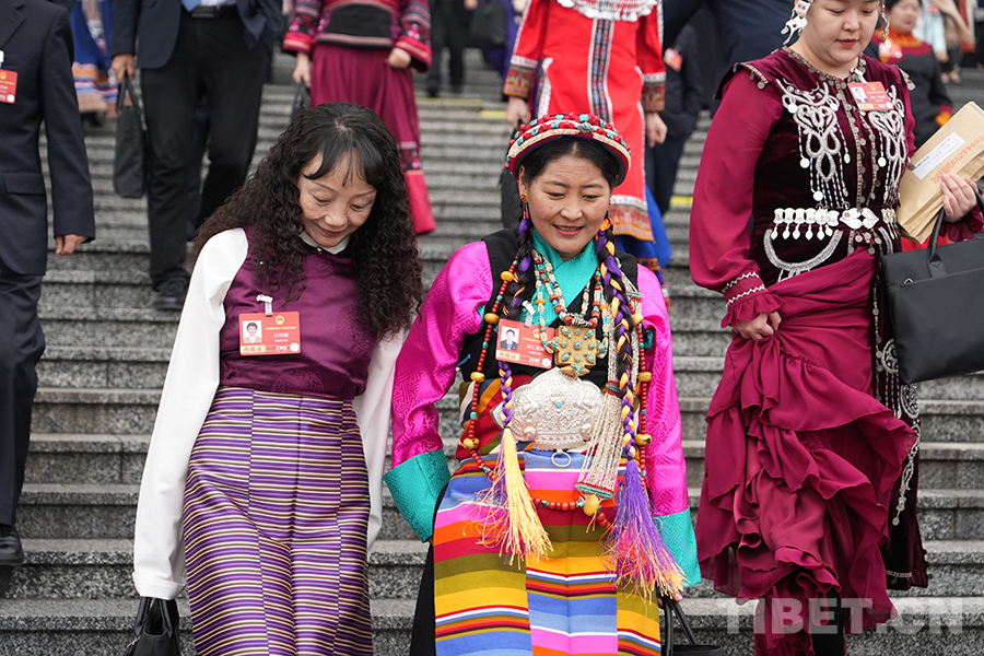 來自西藏自治區(qū)的全國人大代表走出會(huì)場 攝影:邊子捷