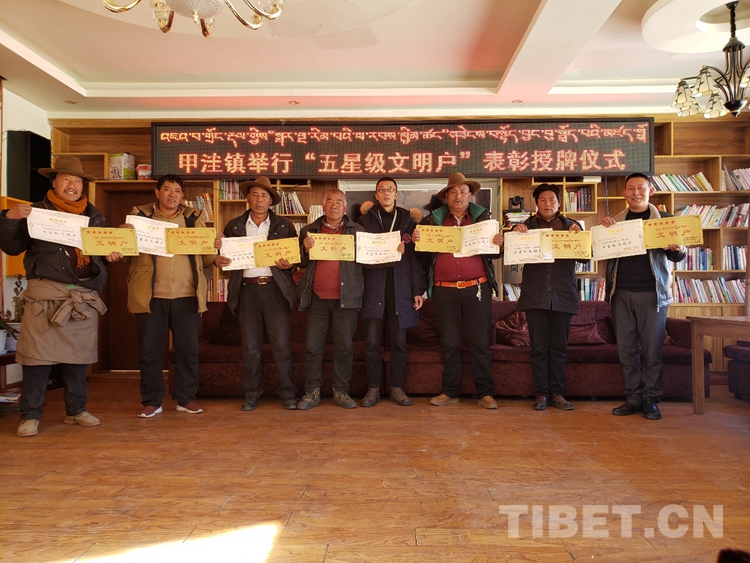 表彰大會結(jié)束后,甲洼鎮(zhèn)宣傳人員分別到東珠村、下依村等7個行政村,為70戶村民懸掛“五星級文明戶”文明牌。(中國西藏網(wǎng) 通訊員/葉強平 扎西曲批)