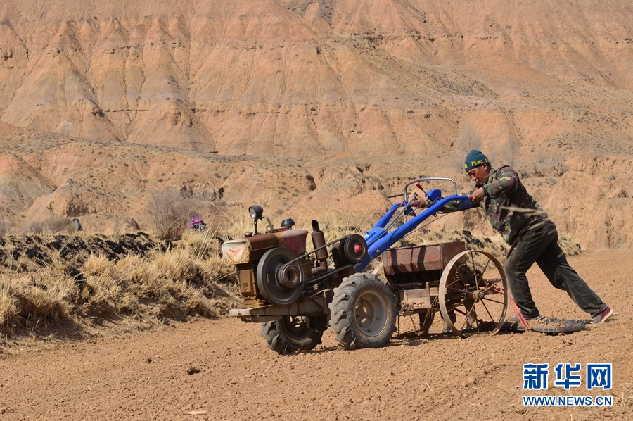 圖為青海省海南藏族自治州貴德縣尕讓鄉(xiāng)俄加村的村民正在耕地播種。新華網 李崇軒 攝