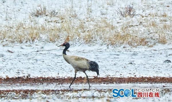 3月16日,在四川省阿壩州紅原縣安曲鎮(zhèn)的草原濕地,到處是雪茫茫的一片,從云南、貴州等地越冬歸來的一群黑頸鶴在此嬉戲覓食。它們時(shí)而逐嬉鬧,時(shí)而展翅飛翔,與周邊的牦牛、赤麻鴨相映成趣,給沉寂的高原帶來無(wú)限生機(jī)和活力。