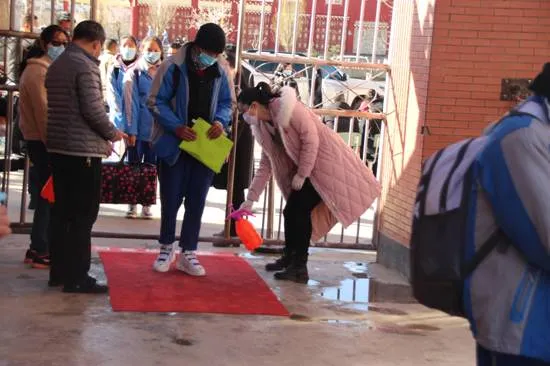 早晨八點三十分,學生陸續(xù)到校,學校各部門按照前期演練的程序有序組織學生進校。班主任在學生整隊等待區(qū)整隊、學生遞交返校監(jiān)控資料、鞋底消毒、手部消毒、領(lǐng)取新口罩、回收舊口罩、體溫檢測、洗手、入班再檢測體溫、宣講新型冠狀病毒感染肺炎防控知識,各個環(huán)節(jié)緊湊有序。185名高三學生沒有出現(xiàn)任何身體不適和體溫異常情況,實現(xiàn)了有序安全返校。