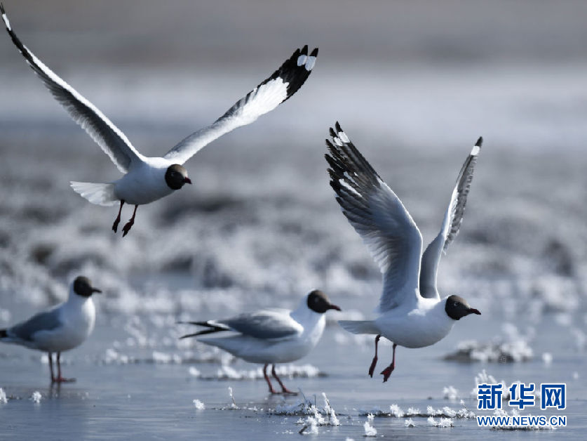 隨著氣溫轉(zhuǎn)暖,大批棕頭鷗陸續(xù)抵達(dá)青海湖,它們?cè)诤呮覒?、覓食,成為春日里一道靚麗的風(fēng)景。