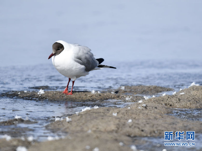 這是4月8日在青海省海北藏族自治州剛察縣青海湖畔拍攝的棕頭鷗。新華社發(fā)(潘彬彬 攝)