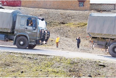 車隊行駛途中,沿線藏族兒童向軍車敬禮。干亞東 攝