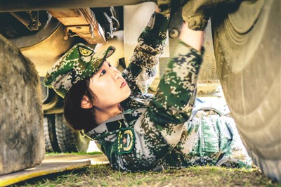 任務(wù)間隙,官兵們認(rèn)真檢修保養(yǎng)車輛。喬可 攝
