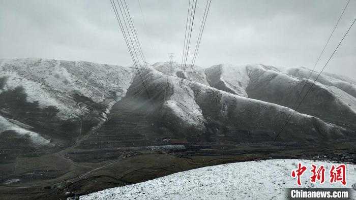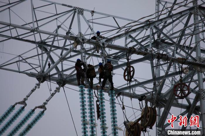 4月下旬,在海拔3100米的甘肅省甘南藏族自治州合作市根沙村,天空還時不時飄雪。在青豫工程甘肅段施工現(xiàn)場,施工人員站在80米高的鐵塔上施工。(資料圖) 夏露 攝