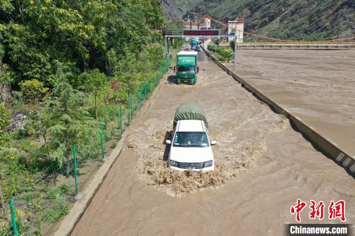 被洪水淹沒的公路。丹巴融媒體提供