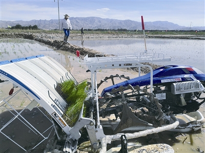 青島海水稻研究發(fā)展中心培育工程師張國東介紹,6月5日,在海拔2800米的河西農場,第一株高原寒地海水稻“踏入”柴達木盆地的荒灘里,“到19號,機插秧階段基本完成,之后還要進行補苗、灌水、排水、施肥等工作,實施水肥藥一體化管理并做好田間水稻生長情況記錄等?!薄昂K尽笔恰澳望}堿水稻”的俗稱,普遍生長在鹽堿地,具有耐鹽堿、抗?jié)?、抗病蟲害、抗倒伏等特點。