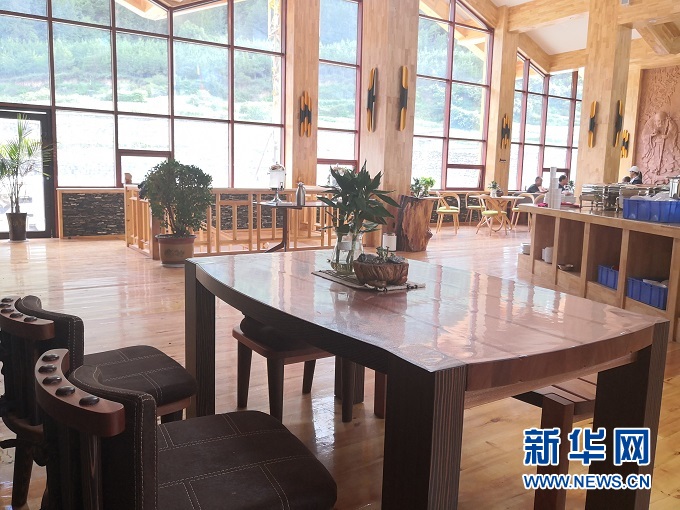 傍晚時(shí)分走進(jìn)高吉村,錯(cuò)落有致的民宿散落山間,落地窗透出暖黃色的燈光。房間里藏式床鋪與原生態(tài)家具相映成趣,靠窗的榻上擺放著茶幾、茶具、綠植,一覽無(wú)余的窗外夕陽(yáng)半落、云飛鳥(niǎo)散。游客接待中心也一改傳統(tǒng)樣式,樓上是純木質(zhì)、開(kāi)放式餐廳,樓下是小橋流水、曲徑通幽的水景,游客們?nèi)齼蓛傻暮戎Х龋硎苤?shī)意的人生。