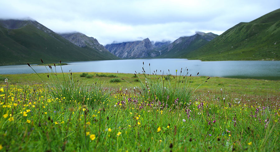 圖為年保玉則保護區(qū)內,五顏六色的小花鋪滿湖岸。劉歡 攝