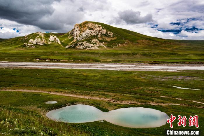 圖為位于雜多縣扎青鄉(xiāng)托乎曲大草原內(nèi)的“眼睛湖”,由于兩湖在水大時連在一起,好像一副眼睛。功霸扎西達(dá)杰 攝