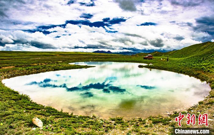 圖為藍(lán)天倒映在眼睛湖中?!O睿 攝