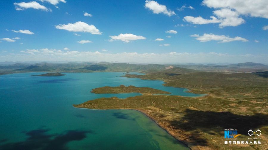 素有“千湖之縣”的瑪多縣境內(nèi)的湖泊。(航拍圖)新華網(wǎng) 宋忠勇 攝