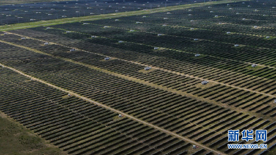 這是8月17日在青海省海南藏族自治州共和縣塔拉灘綠色產(chǎn)業(yè)發(fā)展園區(qū)拍攝的光伏電站(無人機(jī)照片)。新華社記者 張龍 攝
