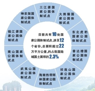 自2015年以來,我國開展了東北虎豹、祁連山、大熊貓、三江源、海南熱帶雨林、武夷山、神農(nóng)架、普達(dá)措、錢江源、南山等10處國家公園體制試點(diǎn)。試點(diǎn)區(qū)將各級各類自然保護(hù)地整合劃入國家公園試點(diǎn)區(qū)范圍,對山水林田湖草等自然生態(tài)系統(tǒng)實行統(tǒng)一管理、整體保護(hù)和系統(tǒng)修復(fù)。