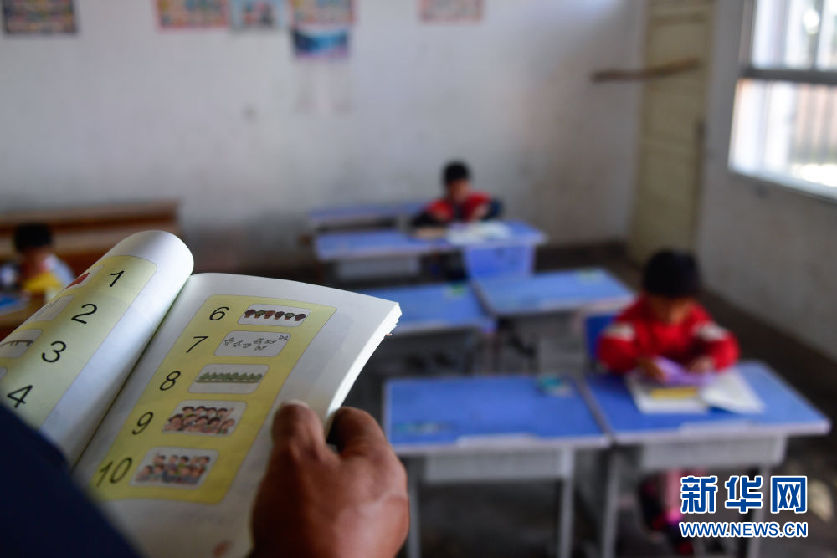 8月31日,在來塘村學校,完么仁增老師在上課。新華社記者 張龍 攝