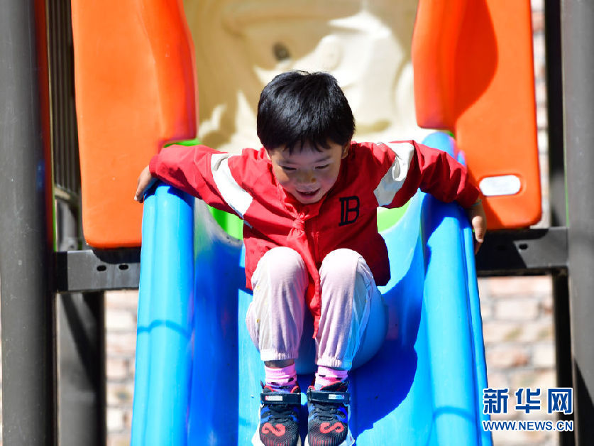 8月31日,在來塘村學校,一年級學生馬秀梅在課間玩耍。新華社記者 張龍 攝