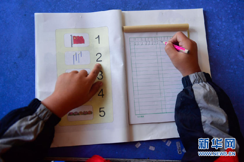 8月31日,在來塘村學校,一年級學生馬良在學習。新華社記者 張龍 攝