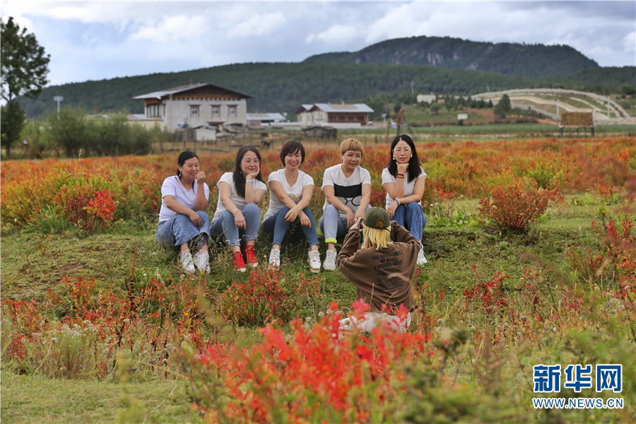 秋季,即將枯萎的狼毒花全身由嫩黃色逐漸變成深紅色,遠(yuǎn)遠(yuǎn)望去猶如天然的紅地毯,紅色的花海吸引游客紛紛拍照留念。