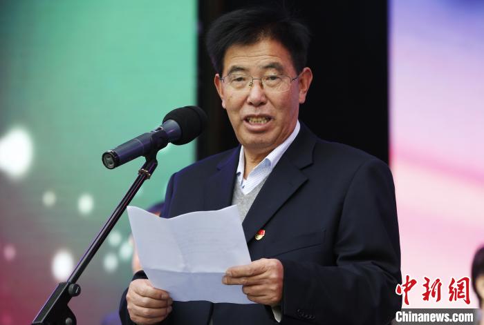 圖為中國新聞社青海分社社長胡鐘藝主持啟動儀式。馬銘言 攝