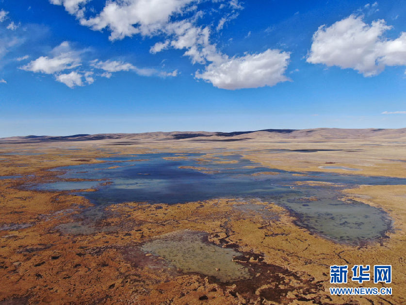 10月30日在青海省果洛藏族自治州瑪多縣境內(nèi)拍攝的一處濕地(無人機照片)。新華社記者 張龍 攝