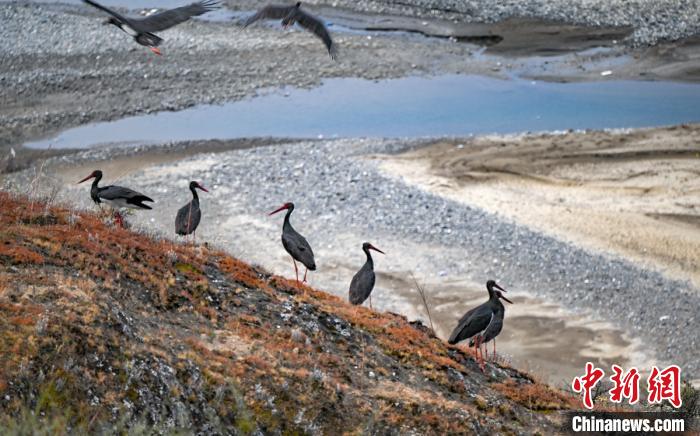 四川爐霍:遷徙的100多只黑鸛現(xiàn)身濕地公園