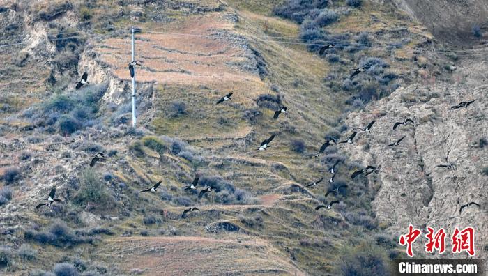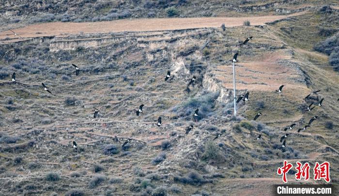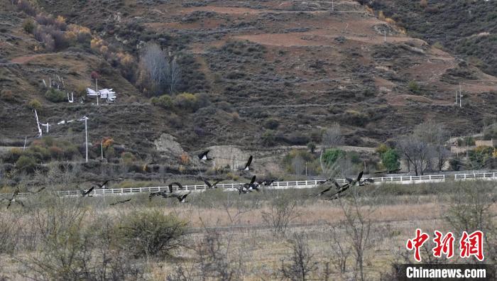 爐霍迎來(lái)遷徙途中的100多只黑鸛。益西次里 攝