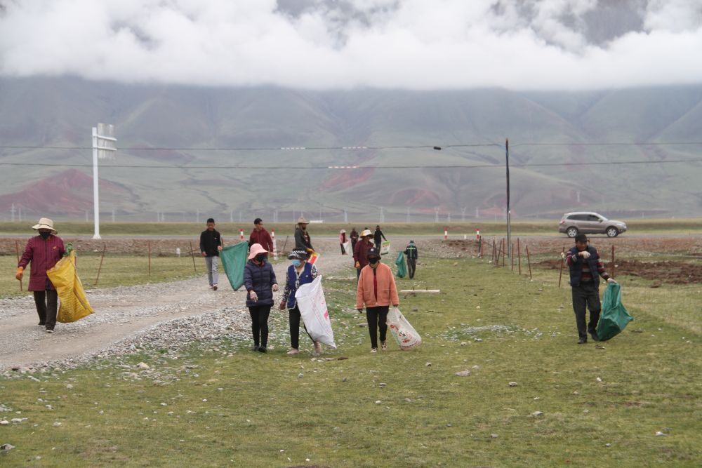 三江源國家公園治多生態(tài)環(huán)保協(xié)會的志愿者在撿拾垃圾(6月15日攝)。新華社發(fā)