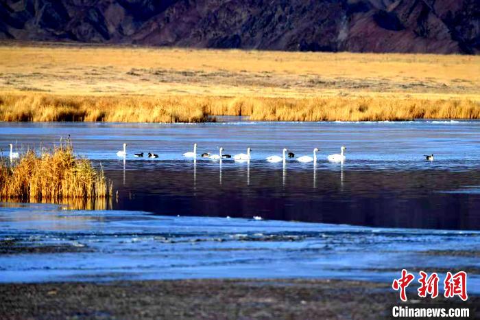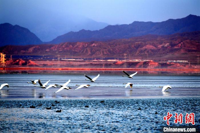 大天鵝飛抵柴達(dá)木盆地都蘭湖國家濕地公園“越冬”