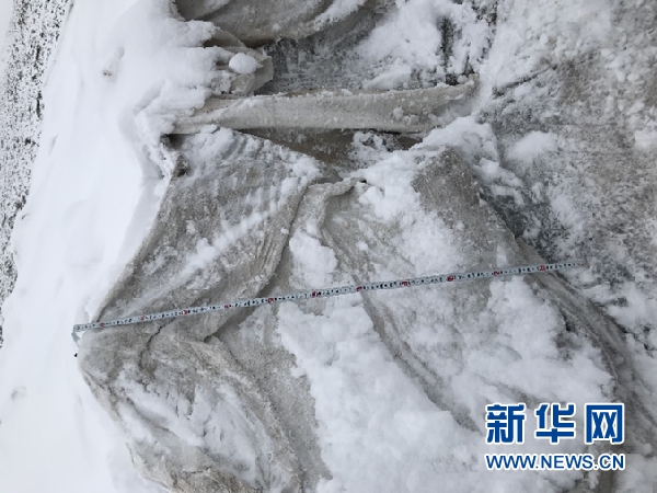 王飛騰團(tuán)隊(duì)發(fā)現(xiàn),“蓋被子”區(qū)域的冰體消融速度減緩?!啊w被子’的地方比不‘蓋被子’的地方冰的厚度高了一米,這高出來的一米就是‘蓋被子’的效果?!蓖躏w騰介紹。