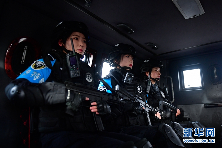 1月9日,青海省果洛藏族自治州公安局特警支隊(duì)直屬女子中隊(duì)的隊(duì)員們乘車參加訓(xùn)練。新華社記者 張龍 攝