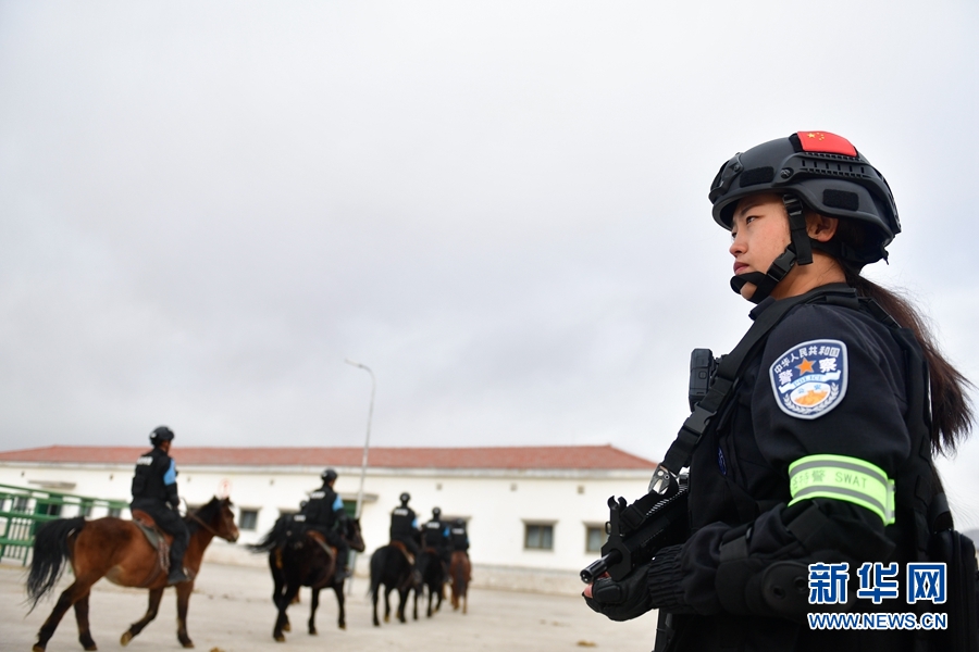 1月9日,青海省果洛藏族自治州公安局特警支隊(duì)直屬女子中隊(duì)的隊(duì)員在進(jìn)行騎馬執(zhí)勤訓(xùn)練。新華社記者 張龍 攝