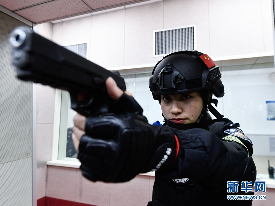 1月9日,青海省果洛藏族自治州公安局特警支隊(duì)直屬女子中隊(duì)的隊(duì)員在參加射擊訓(xùn)練。新華社記者 張龍 攝