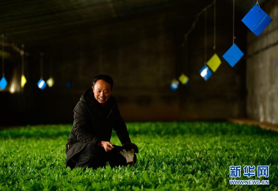 1月13日,在青海省果洛藏族自治州農(nóng)牧業(yè)生態(tài)科技示范園,工作人員王輝軍在查看蔬菜生長情況。 新華社記者 張龍 攝