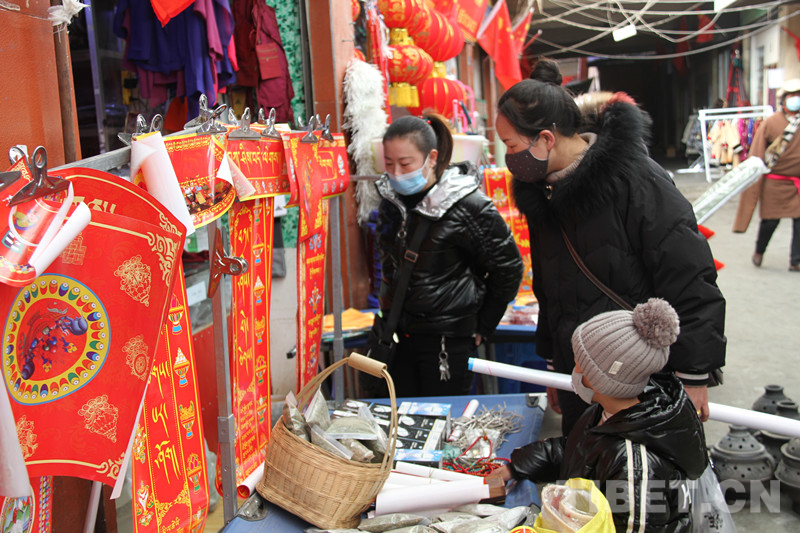 圖為選購藏式春聯(lián) 葉強平 攝