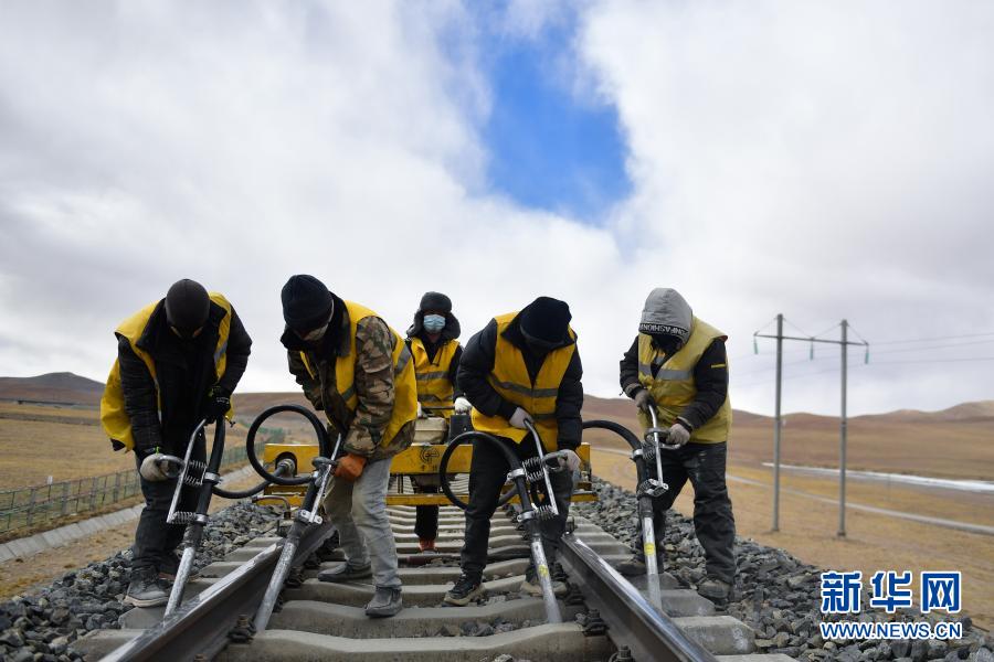 2月4日,養(yǎng)路工人在唐古拉山區(qū)養(yǎng)護青藏鐵路。新華社記者 張龍 攝