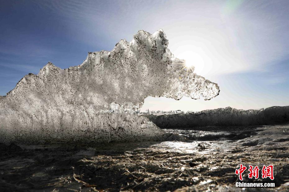 青海湖“冰封期”:巨大冰凌層層堆砌