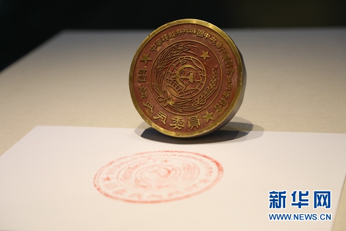 這是珍藏在甘肅省甘南藏族自治州迭部縣博物館內(nèi)的“中華蘇維埃共和國(guó)中央執(zhí)行委員會(huì)人民委員會(huì)財(cái)政人民委員”印章。新華社記者 馬莎 攝