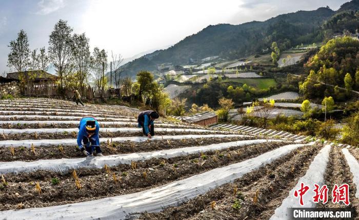 4月的四川雅安市寶興縣磽磧藏族鄉(xiāng),山坡上整齊有序的地膜,錯落有致鋪在藏寨林間,構(gòu)成了一幅田園山水與天人合一的自然畫卷。