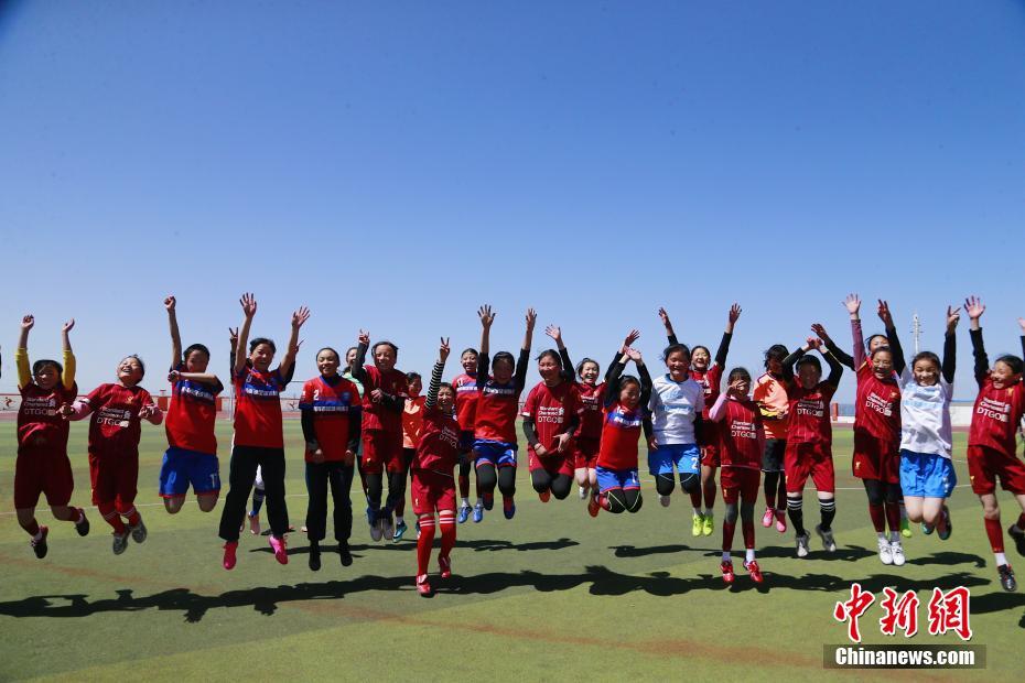 青海湖民族寄宿制學(xué)校女子足球隊(duì)的隊(duì)員們。中新社記者 馬銘言 攝