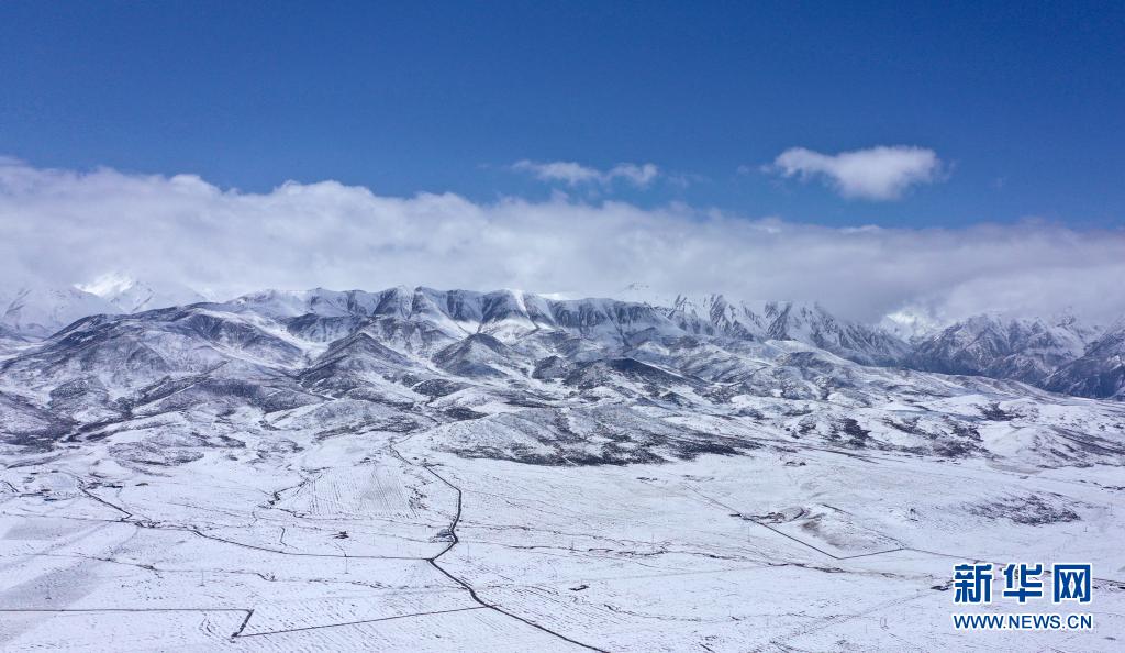 這是4月24日拍攝的祁連縣境內(nèi)雪景(無人機(jī)照片)。新華社記者 張宏祥 攝