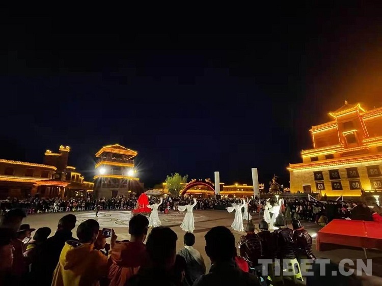 圖為四川省甘孜州甘孜縣格薩爾王城文化廣場上的歌舞表演