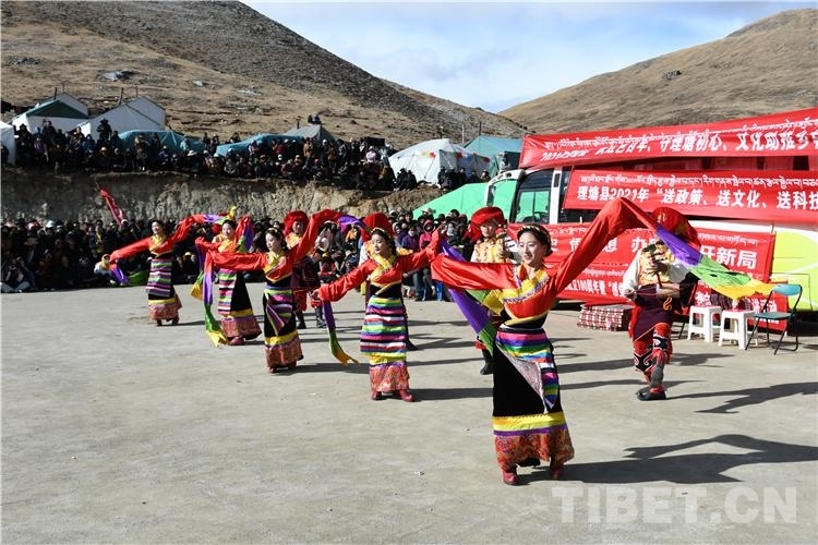 理塘縣文旅廣局工作人員還為群眾呈現(xiàn)了精彩紛呈、寓教于樂的文藝演出,歌曲、舞蹈一個接著一個,姑娘們熱情萬分,默契十足地邁著優(yōu)雅的舞步;男子們帥氣的舞姿英武颯爽,優(yōu)美的歌聲婉轉(zhuǎn)動聽,讓歡聲笑語久久響徹山間。
