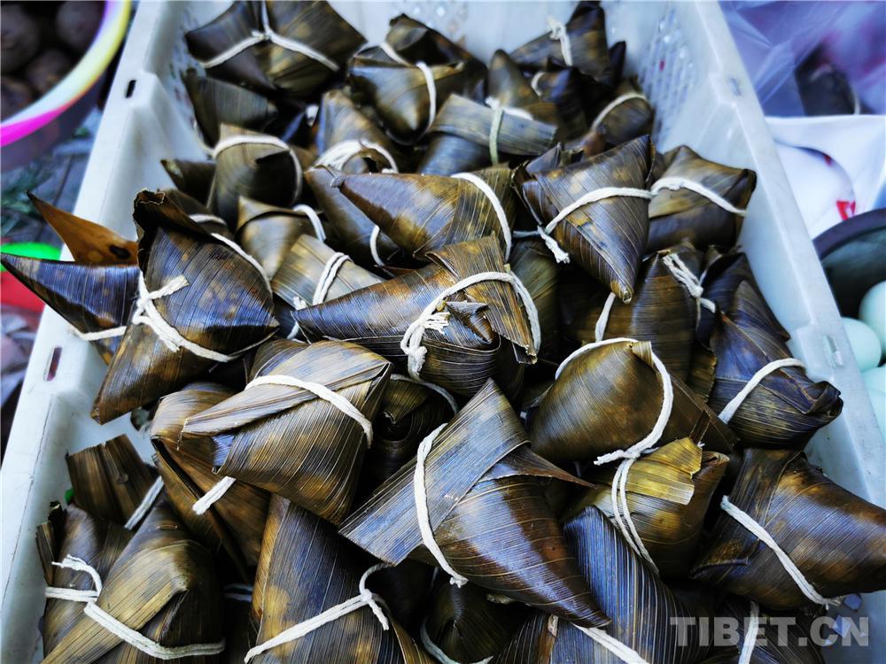 中國西藏網訊 “杏兒紅、麥兒黃,五月初五是端陽。門插艾、香滿堂,粽葉香、包五糧。剝個粽子裹上糖,幸福生活萬年長!洗個艾葉澡,泡個艾葉腳,舒舒服服煩惱都趕跑……”時值端午,清晨,哼著自己改編的端午節(jié)小曲兒,四川省甘孜藏族自治州巴塘縣居民格桑次仁來到了農貿市場,挑選過節(jié)的物品。吆喝聲、招呼聲、歡笑聲,市場里好不熱鬧,格桑次仁用鏡頭記錄下了節(jié)日的氛圍。(中國西藏網 通訊員/格桑次仁 記者/李元梅)