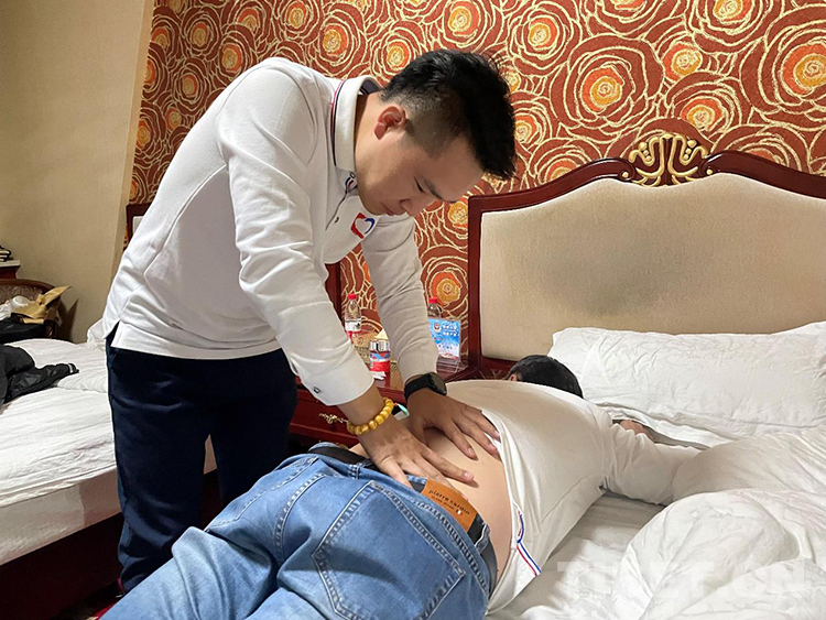 在寶貴的休息時間里給多少團隊成員扎過針,常有才沒數(shù)過,“估計有二三十人,或者你去群里問問。”帥氣的他笑呵呵地說。