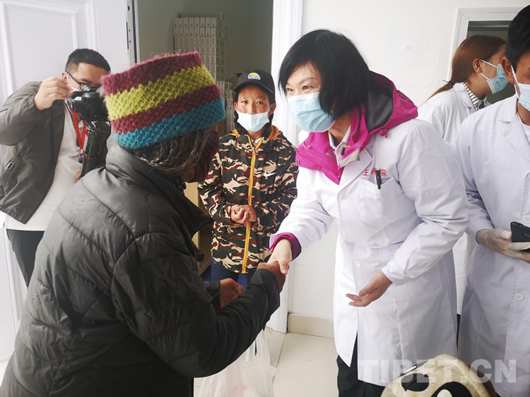 圖為拄著拐杖前來問診的窩賽鄉(xiāng)牧民