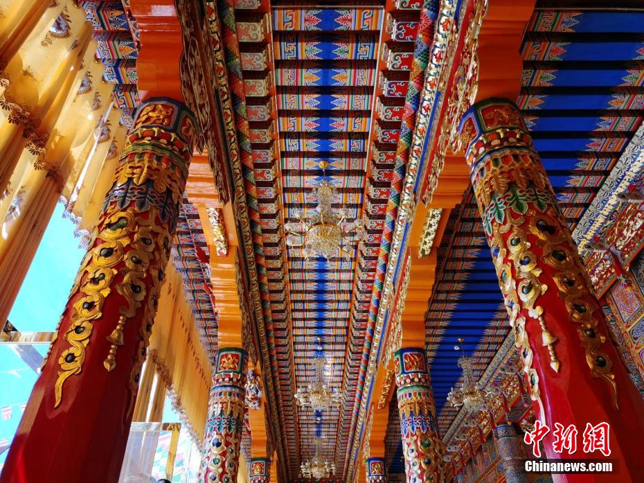 圖為扎西多卡瑪?shù)畋皇澜缂o(jì)錄認(rèn)證機(jī)構(gòu)(WRCA)認(rèn)證為彩繪面積最大的單體藏傳佛殿建筑。張?zhí)砀?攝