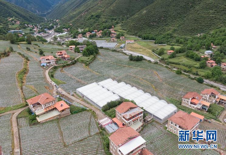 這是四川省阿壩藏族羌族自治州馬爾康市松崗鎮(zhèn)丹波村的蔬菜基地(8月12日攝,無人機照片)。新華社記者 江宏景 攝