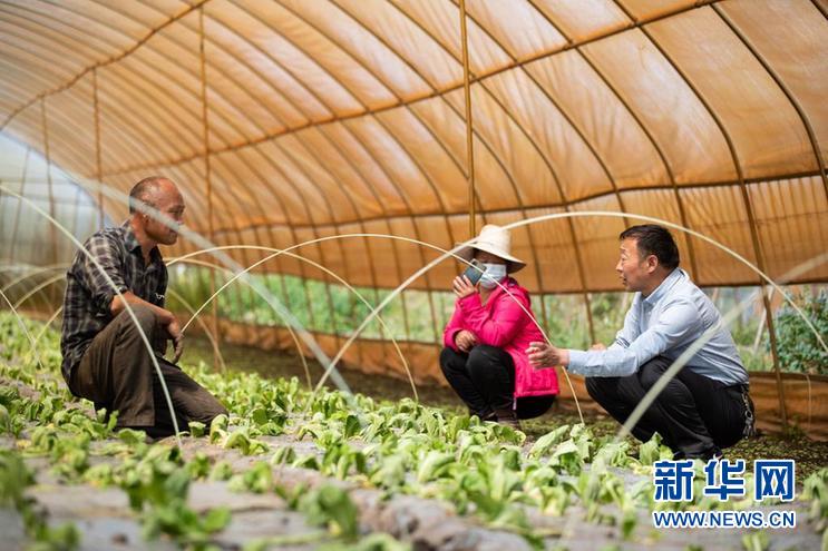 8月13日,在四川省阿壩藏族羌族自治州紅原縣邛溪鎮(zhèn)熱坤村的蔬菜大棚,農業(yè)技術推廣研究員茍?。ㄓ遥┰诮o蔬菜種植大戶答疑解惑。新華社記者 江宏景 攝